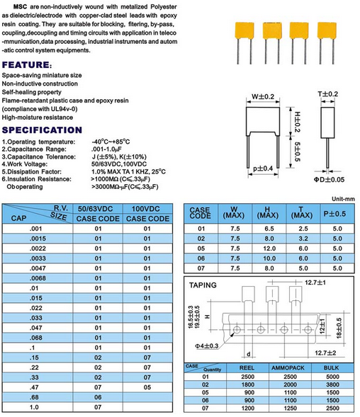 小型金属化聚乙脂膜电容器