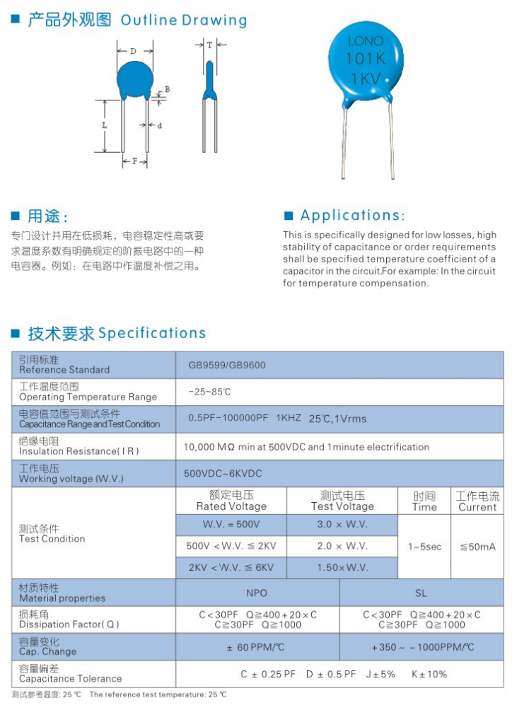 DC.Capacitor (T-C)DC.陶瓷电容器1类(温度补偿型)